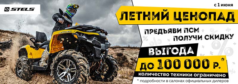 АКЦИЯ ЛЕТНИЙ ЦЕНОПАД! ВЫГОДА да 100.000руб. на квадроциклы STELS