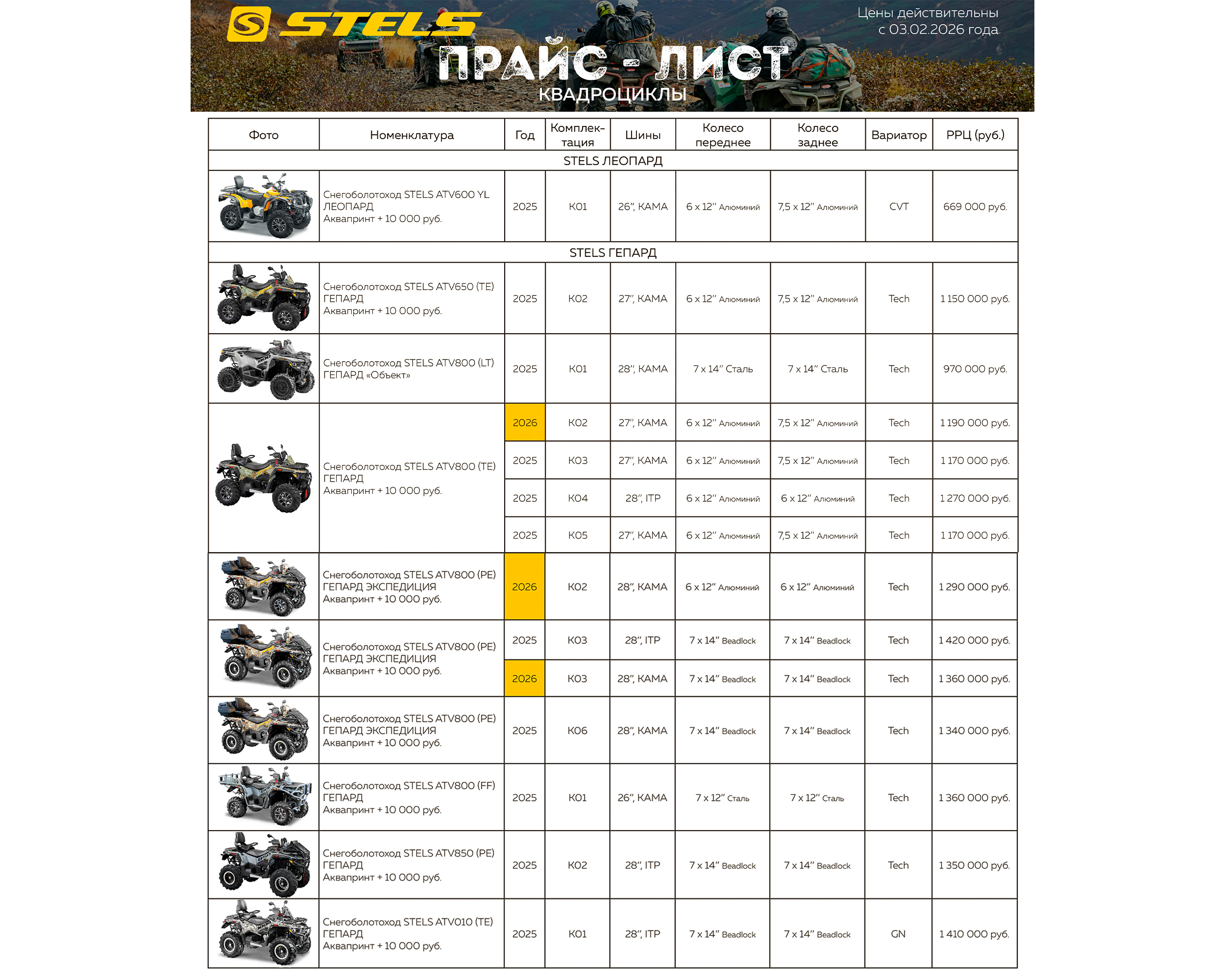 Обновленный прайс-лист на квадроциклы и снегоходы STELS