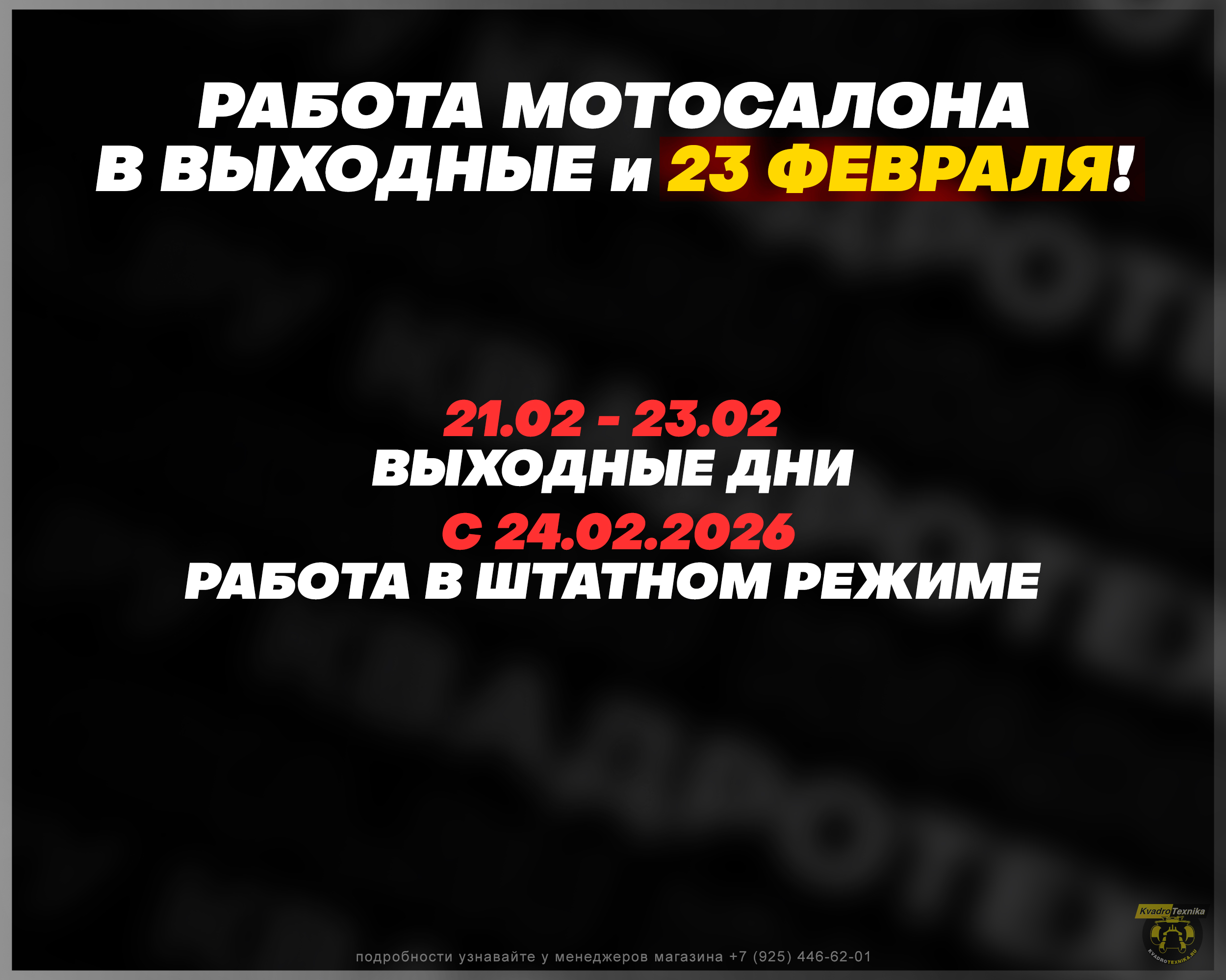 РЕЖИМ РАБОТЫ 23 ФЕВРАЛЯ!